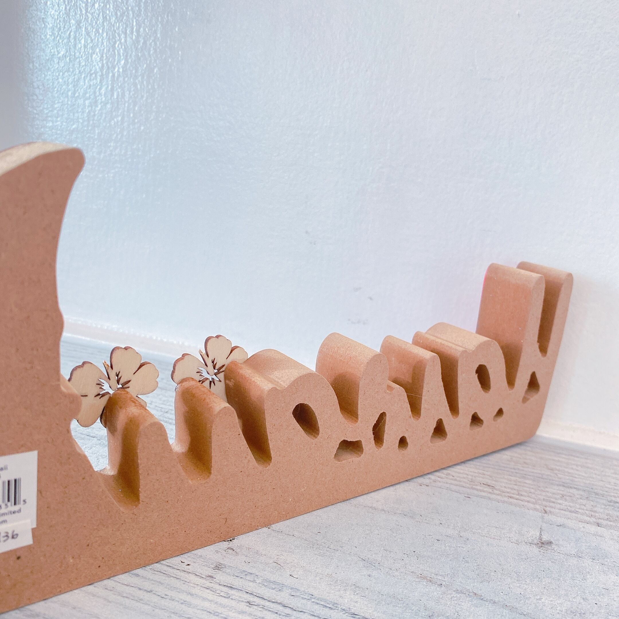 Hawaiiの文字とサーフサンタのモチーフになります。
