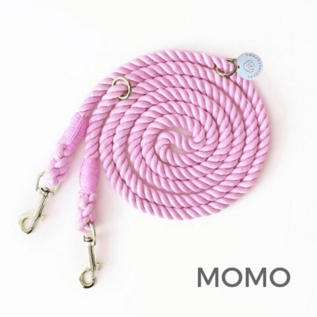 手触りが柔らかく、飼い主様の手にも優しいコットン素材のハンズフリーロープリードです。