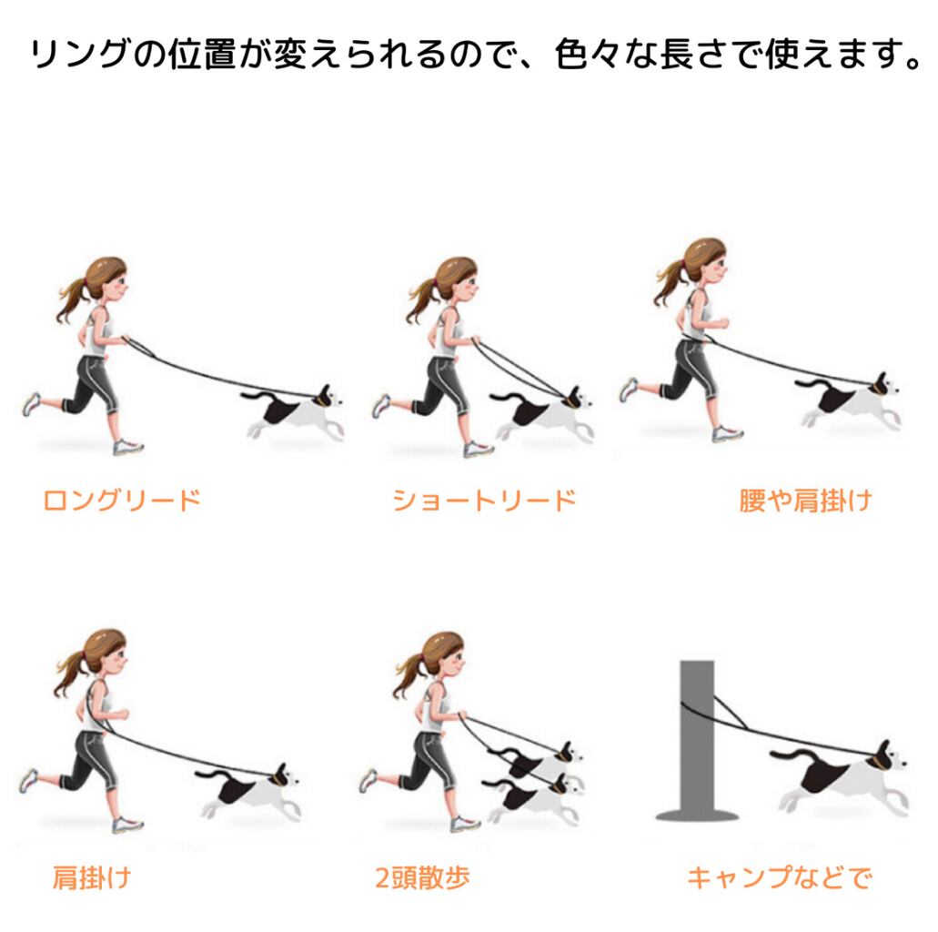 〇 肩掛け・腰巻き・ロングリード・多頭使い等様々な使い方ができる多機能リードです